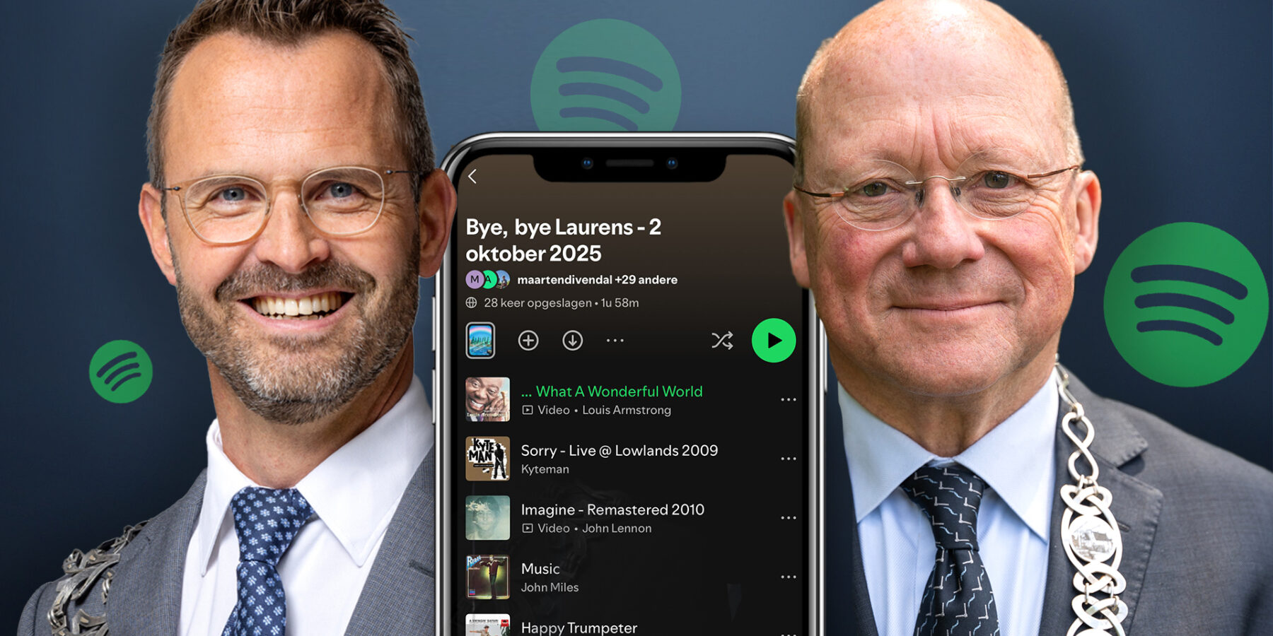 Burgemeester Maarten Divendal van De Ronde Venen stond deze week even centraal bij het afscheid van zijn Lopikse collega Laurens de Graaf. Niet als spreker of als gast, maar als bedenker van een bijzonder cadeau: een Spotify-afspeellijst vol muziek die past bij De Graaf.