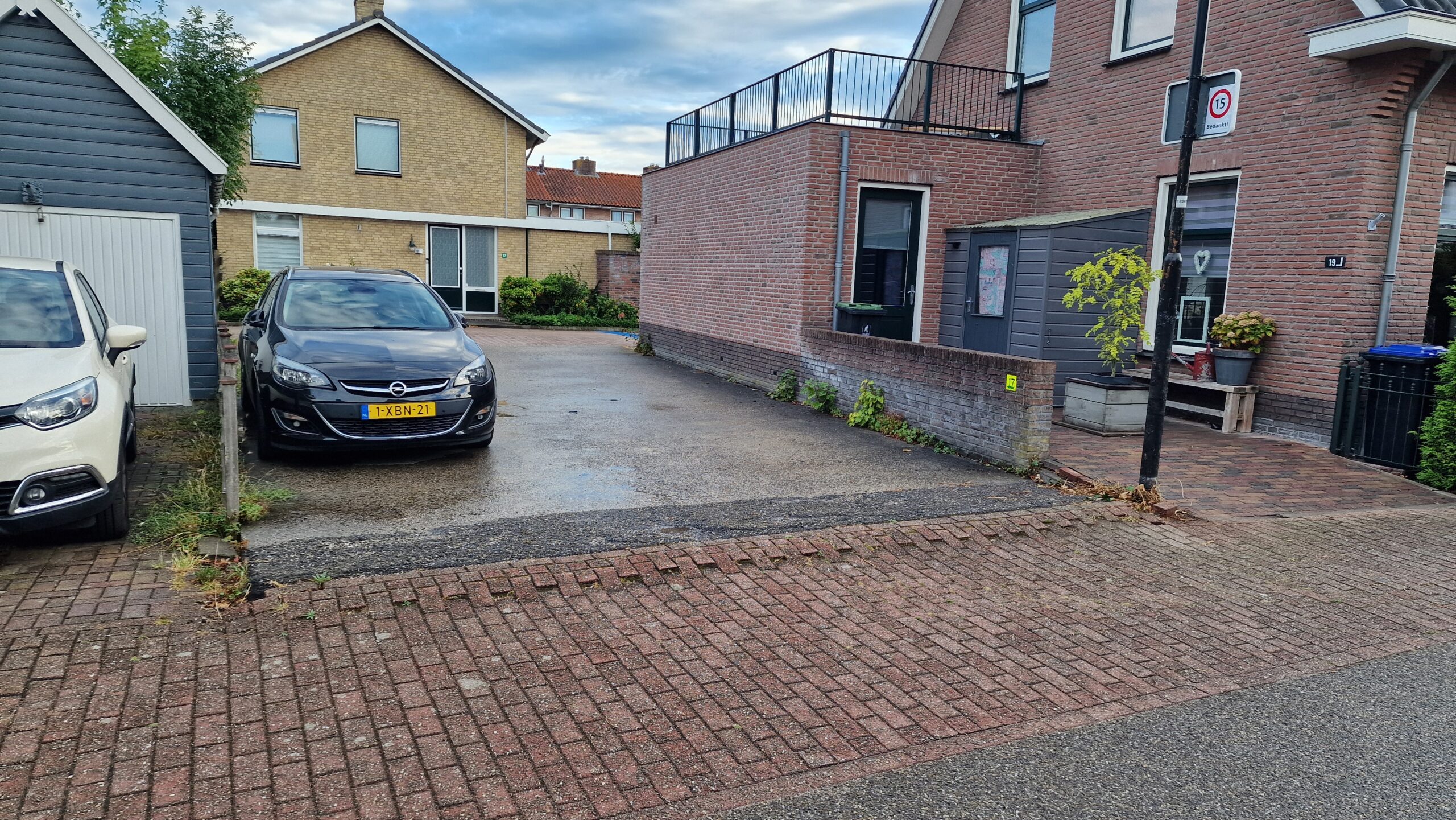 Auto’s kunnen via de parkeerplaats Haitamaplein tussen de supermarkt en de begraafplaats doorrijden. En via de Kerkvaart en deze betonplaat het centrum weer verlaten.