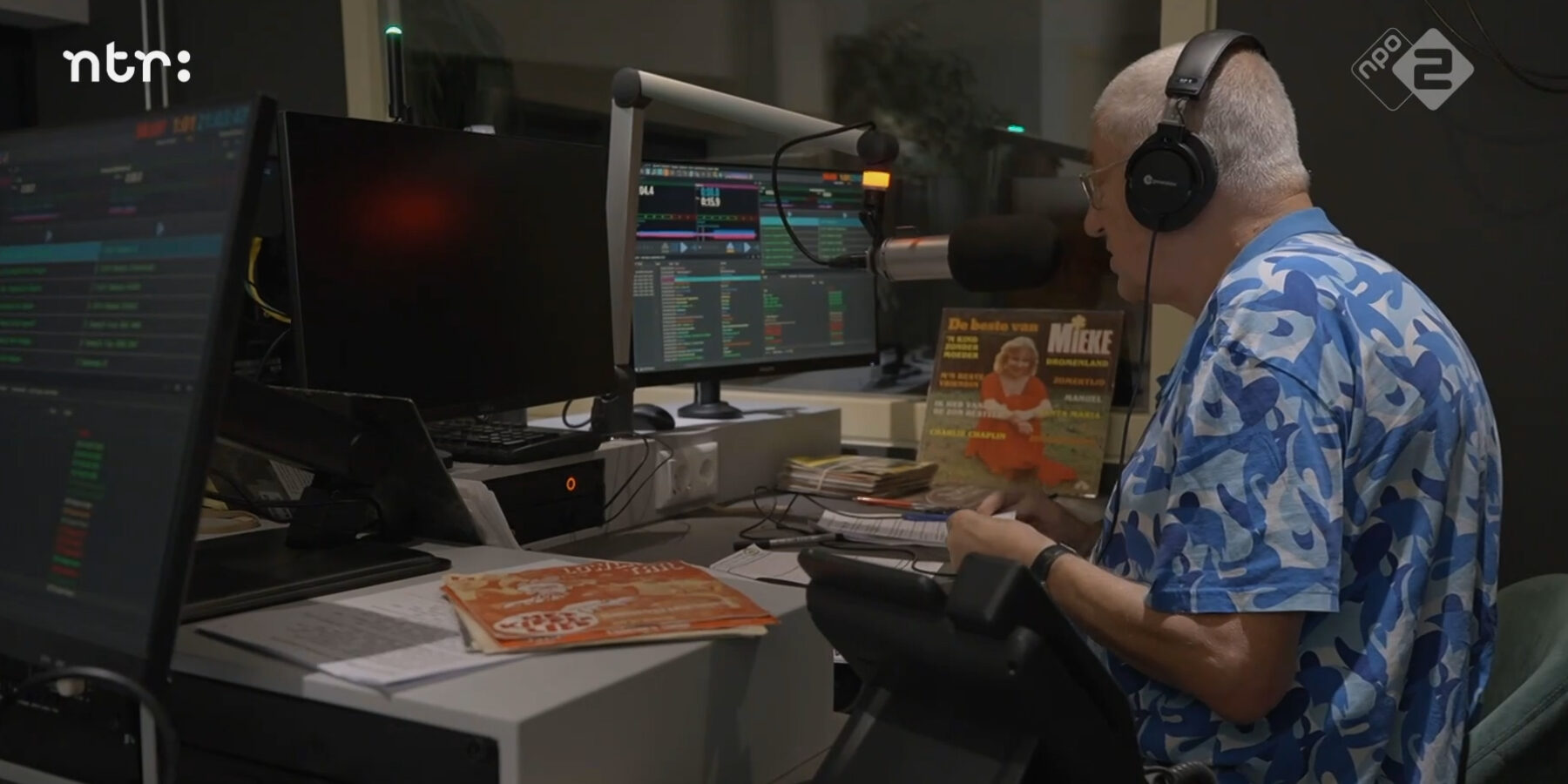 Willem Boele in zijn element: achter de microfoon, omringd door platen en verzoekjes