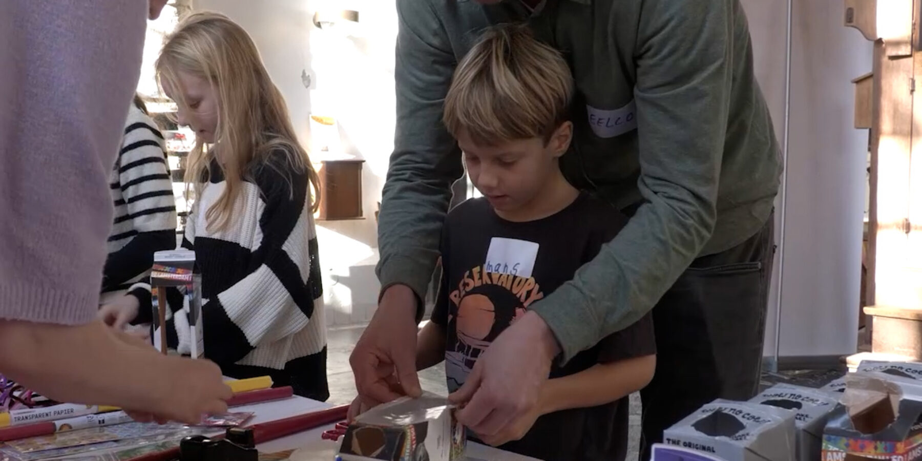 De geur van lijm en verf hangt in de lucht, de tafels liggen vol kleurige papieren en waxinelichtjes. In de Dorpskerk klinkt gelach, geritsel en af en toe een verwonderd “oh!”. Hier draait het niet om stilzitten, maar om samen doen: de Kliederkerk is in volle gang.