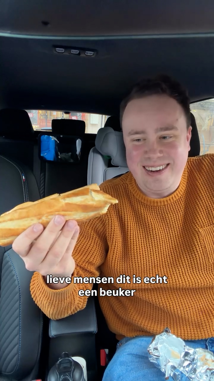 Wat opvalt: geen grootse woorden, geen overdreven lof. Wel oprechte verwondering over hoe simpel en doeltreffend het broodje blijkt te zijn. “Kaas en frikandel gaan uitstekend samen,” zegt hij, en even later: “Dit zou geen Nobelprijs voor eten winnen, maar het is wel de beuker waar je soms echt behoefte aan hebt.”