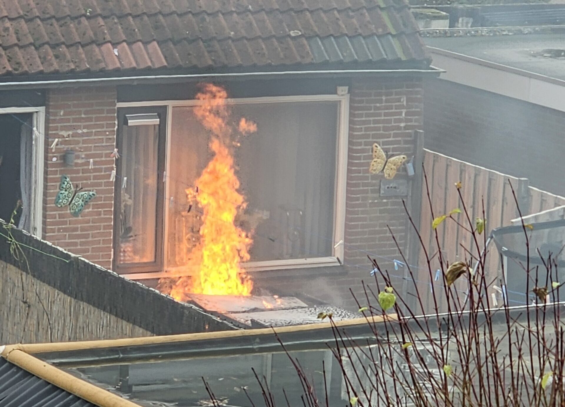De politie heeft de directe omgeving afgezet. Volgens de brandweer stond onder meer een tuinset in brand. De brandweerlieden zijn nog bezig met nablussen en het slopen van aangetaste delen om herontsteking te voorkomen.