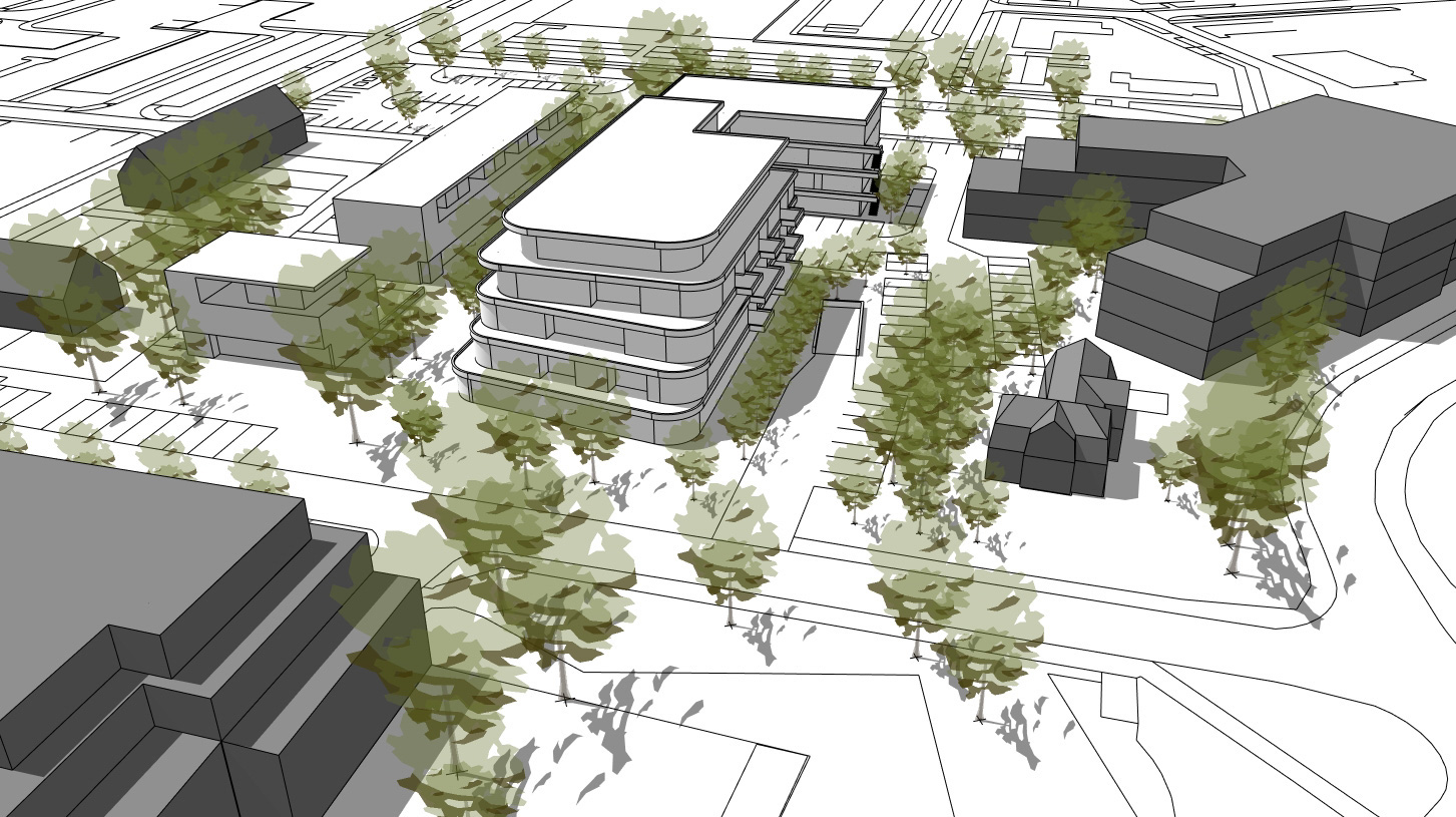 Het project wordt volledig op eigen terrein ontwikkeld. “En we lossen een belangrijk deel van het parkeren op eigen terrein op,” benadrukt Joustra. Ook wordt het naastgelegen parkeerterrein vergroot, ten koste van de skatebaan. Bezoekers van winkelcentrum De Adelhof kunnen daar ook parkeren.
