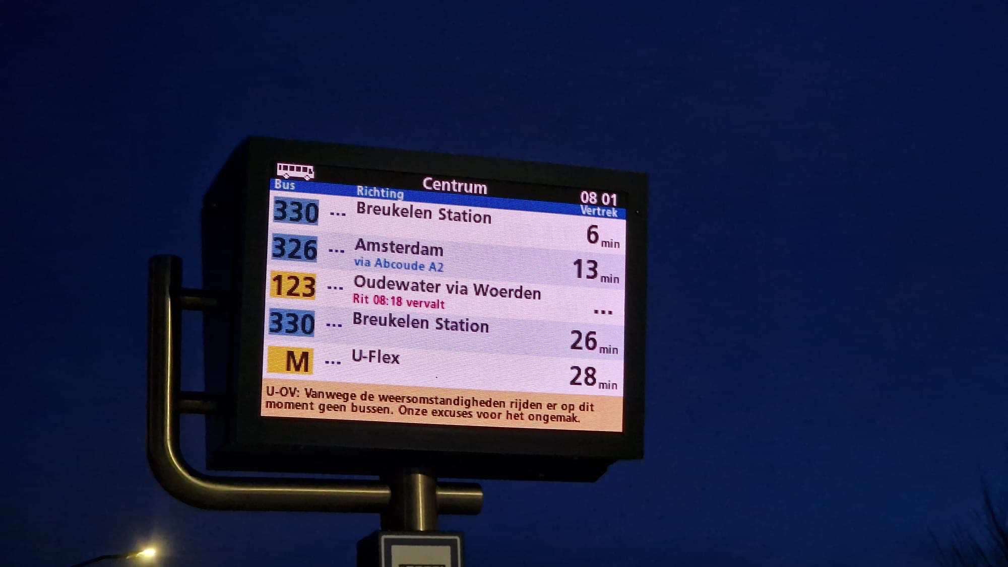 Vanwege de weersomstandigheden rijden er op dit moment geen bussen…
