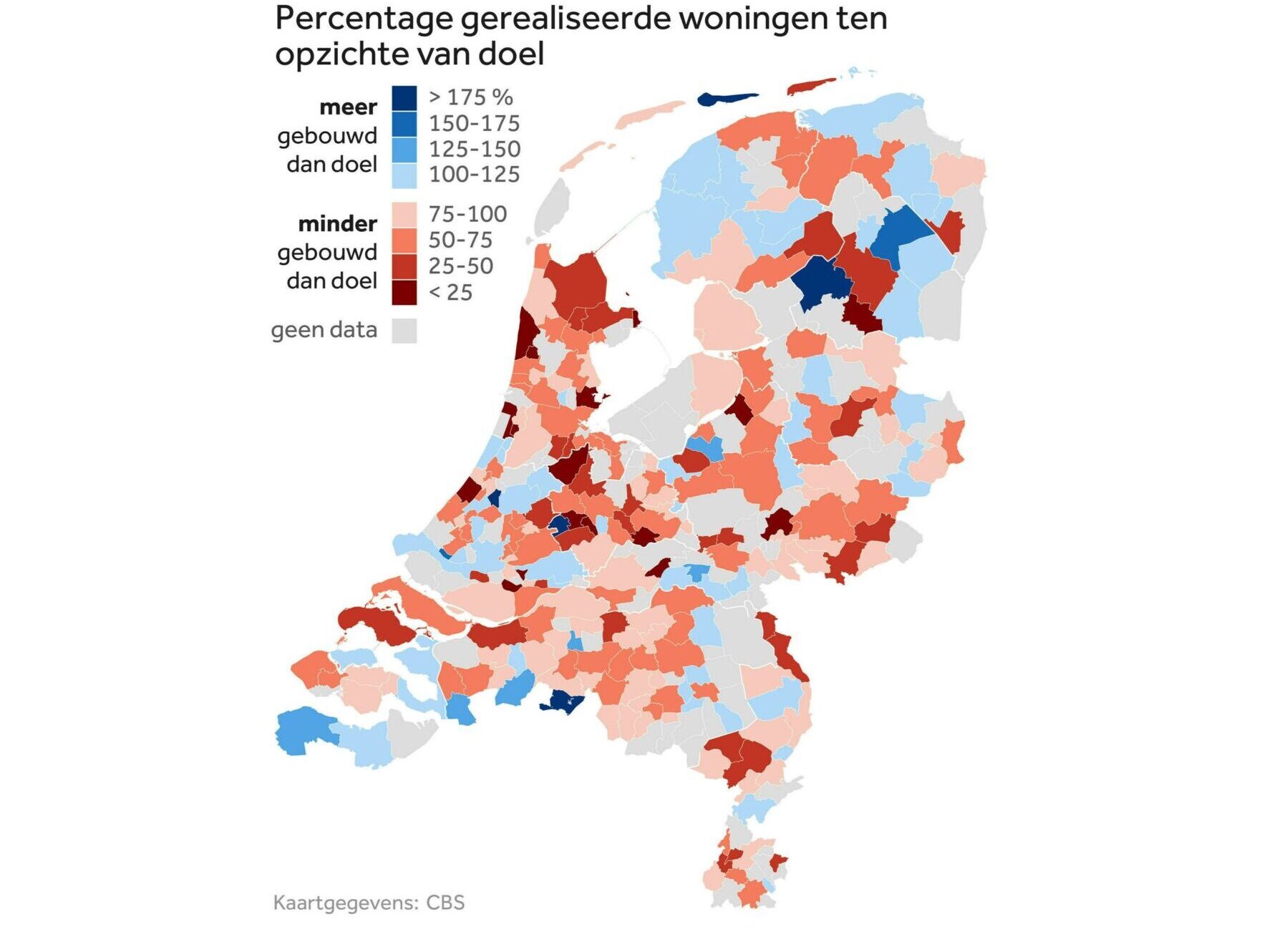 De kloof tussen de 375 gebouwde huizen en het uiteindelijke doel van 3.200 woningen is te verklaren door de lange adem van bouwprojecten. Volgens de woordvoerder is het lage percentage van 23 procent een “kwestie van timing”. Tussen het eerste plan en de uiteindelijke oplevering zit vaak een periode van acht tot tien jaar. “Als in eerdere jaren minder projecten zijn opgestart, zie je dat later direct terug in lagere oplevercijfers”, aldus de gemeente.