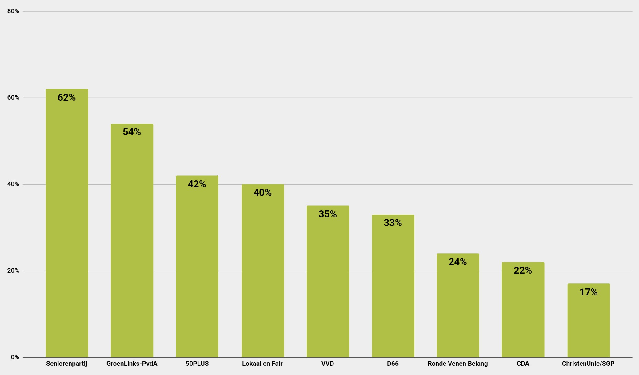 Percentage vrouwen op de kieslijst in De Ronde Venen | Bron: stemopeenvrouw.com