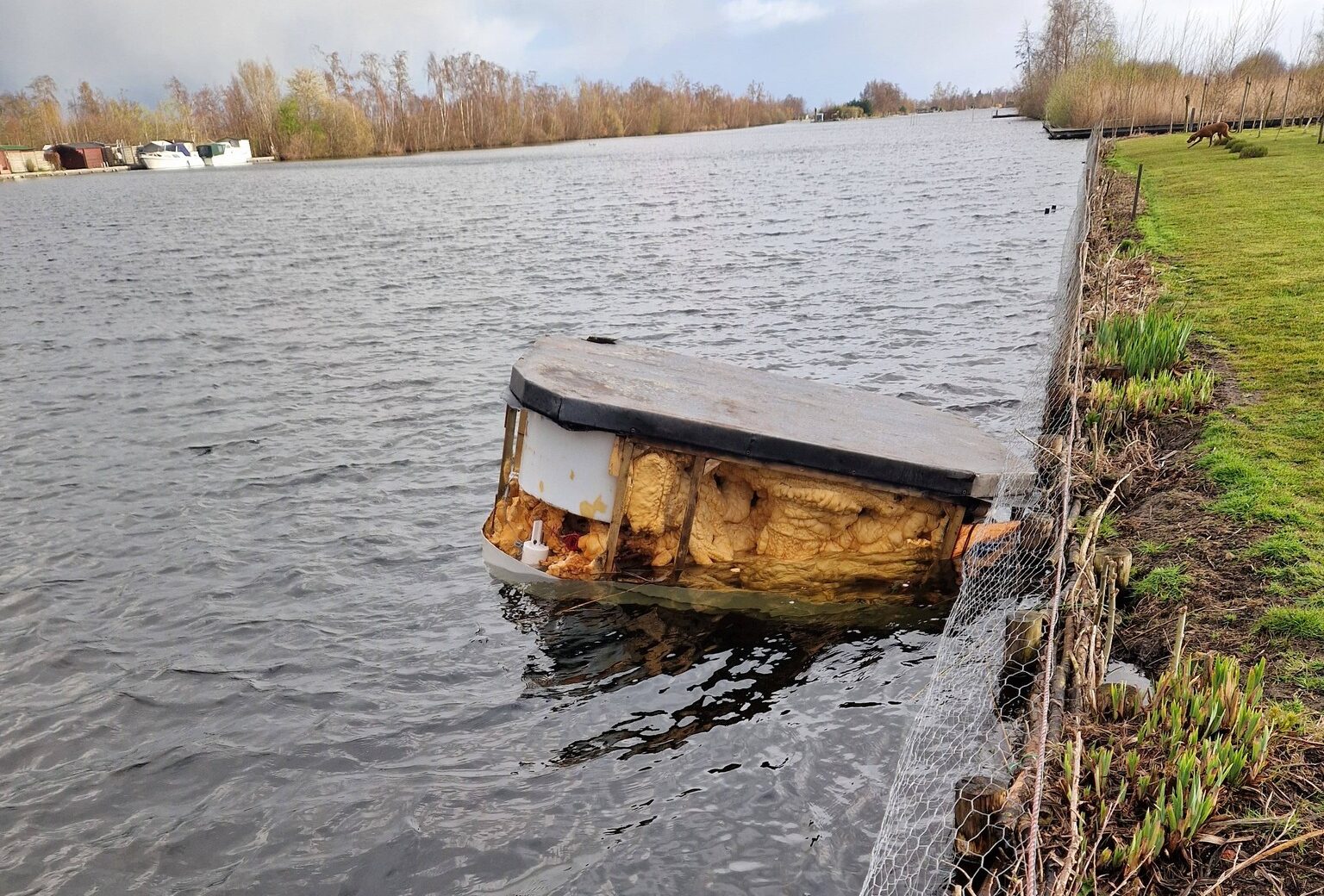Een opvallend gezicht op de Vinkeveense Plassen: een losgeslagen hottub dreef vandaag rustig voorbij. Door de harde wind van de afgelopen periode lijkt het object zijn eigen koers over het water te hebben gekozen.