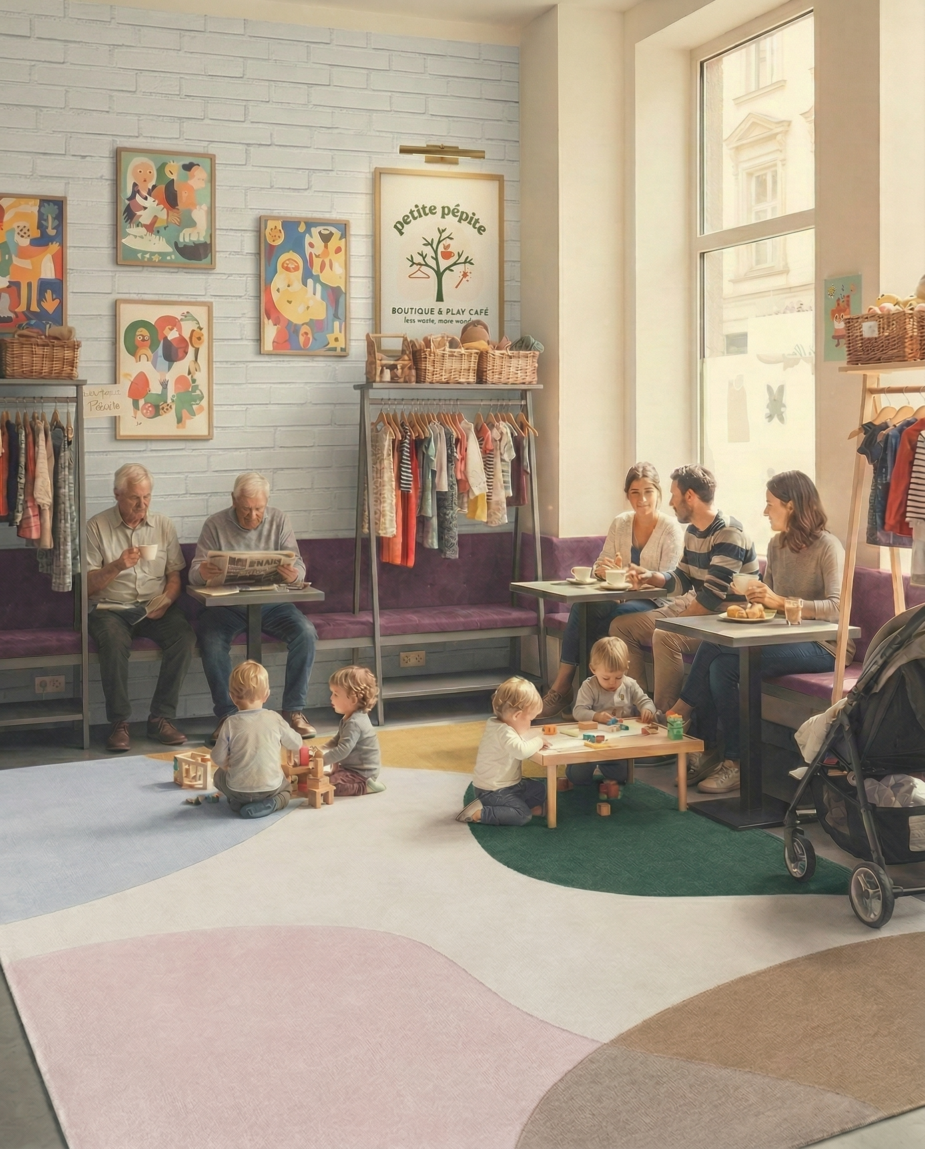 Ze onderzocht of meer ouders dat gevoel herkenden. Dat bleek zo: 94 procent van de ondervraagden gaf aan interesse te hebben in een plek met een circulaire kinderwinkel, café en speelhoek.