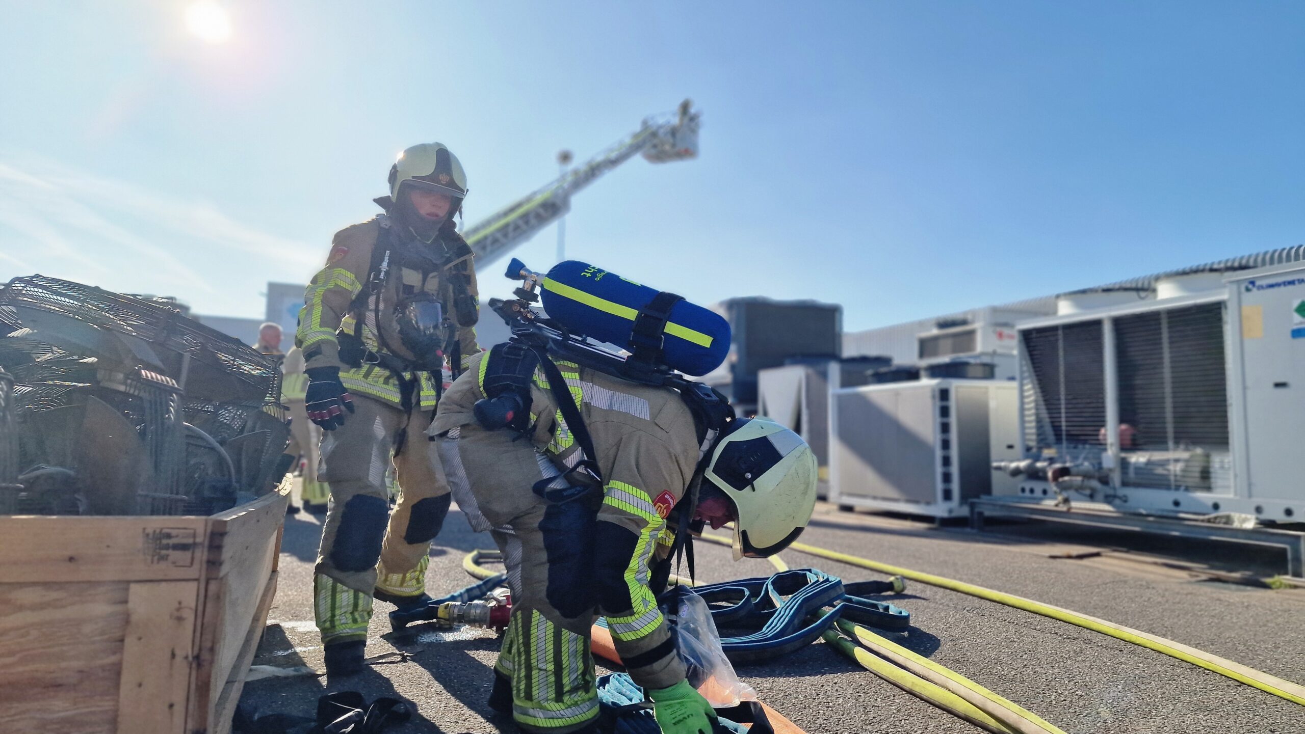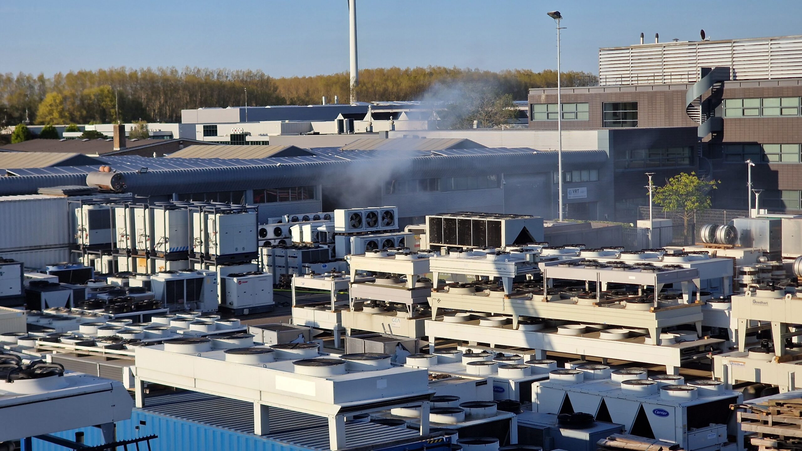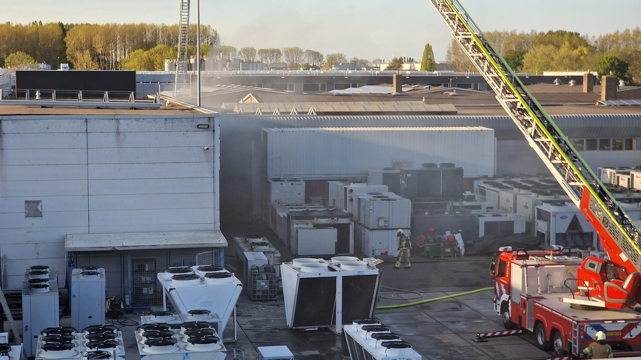 De eerste melding kwam kort voor 18:00 uur binnen. Bij een bedrijf dat handelt in gebruikte klimaatbeheersingsapparatuur ging het brandalarm af, waarna een beveiliger kwam kijken. Bij aankomst troffen de spuitgasten een pand aan dat volledig onder de rook stond. De brandweer koos er in eerste instantie bewust voor om de loods niet direct te betreden. “Er zat ergens binnen brand, maar we hielden alle deuren dicht zodat er geen zuurstof bij kon komen,” legde een brandweerman ter plaatse uit. “Ondertussen konden we alle slangen klaarleggen om optimaal voorbereid te zijn.”