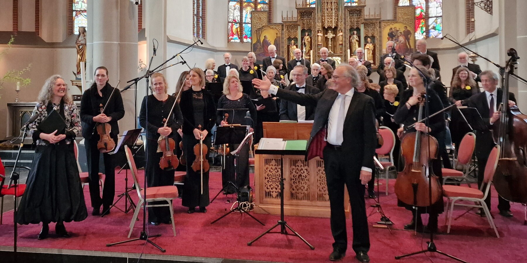 Het koor wordt begeleid door het Naska-orkest en solisten Agnes van Laar (sopraan), Wies de Greef (alt), Arco Mandemaker (tenor), Robert-Jan Agricola (bas/bariton) en Henny Heikens (continuo), onder leiding van Gert J. Hans.