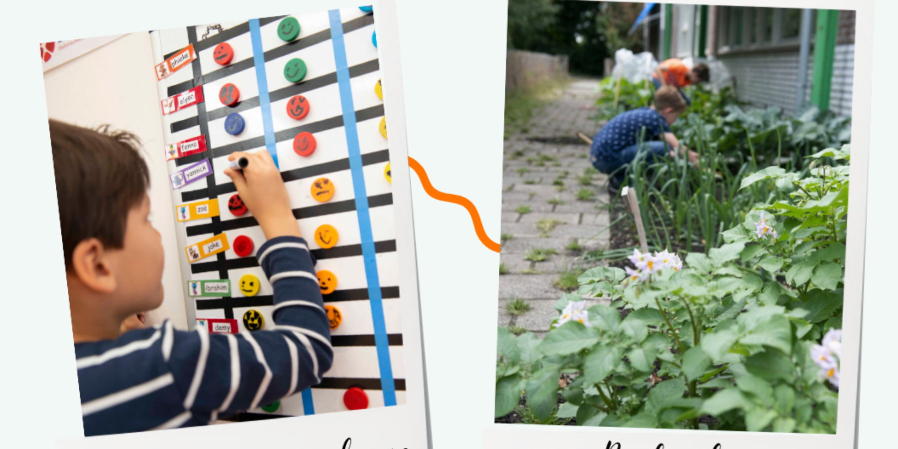 Leerlingen uit de groepen 7 en 8 verzorgen rondleidingen door het gebouw, waarbij ook aandacht is voor praktijkvoorbeelden zoals de schoolmoestuin en de aanwezige kippen.