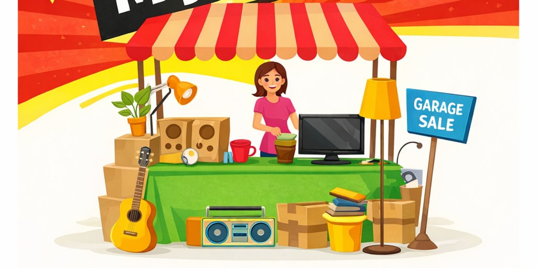De markt, die op de aankondiging wordt gepresenteerd met illustraties van onder meer huisraad, instrumenten en elektronica, is voor iedereen gratis toegankelijk.